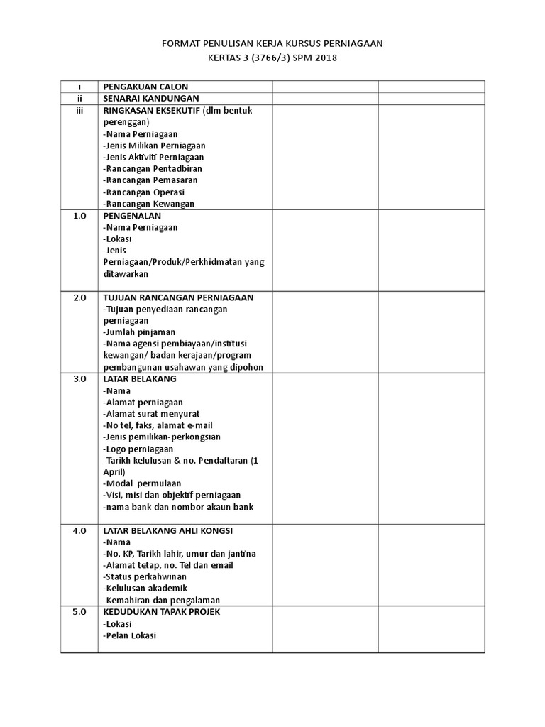 Format Penulisan Kerja Kursus Perniagaan Maklumat Details Pdf