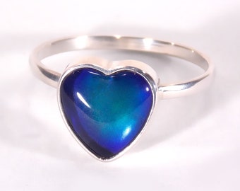 Sterling Silver Heart Shaped Mood Ring Bright Colour Etsy Ireland